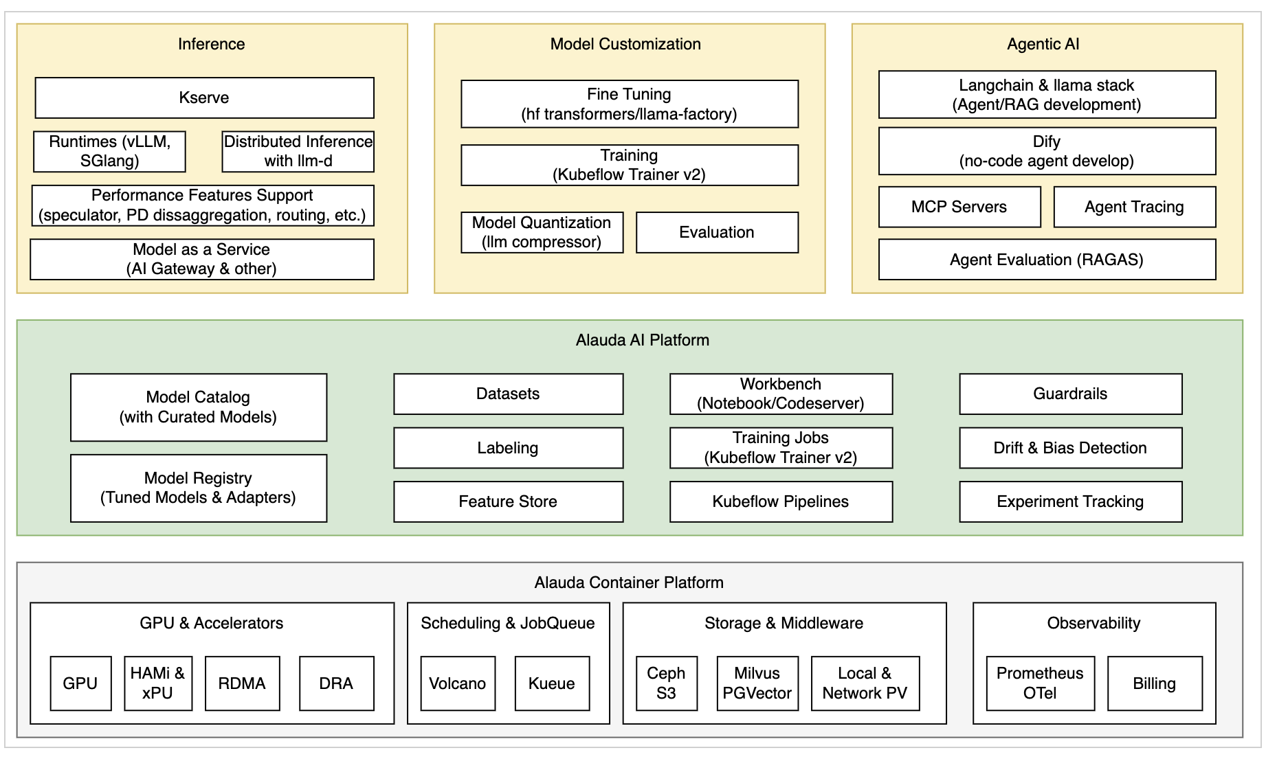 | Training (Alauda support for Kubeflow Trainer v2) | Kubernetes-native training job management | Open source | Apache Version 2.0 |